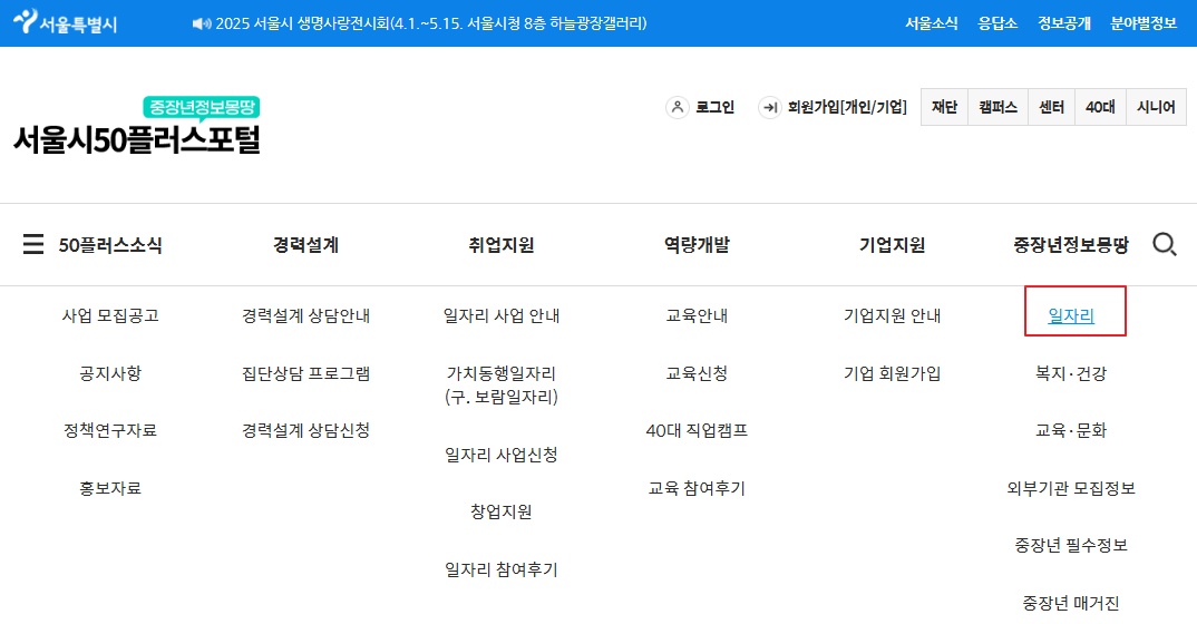카테고리 없음 중장년 일자리 정보(서울시 50 플러스 센터) by 파르헤시아 2025. 4. 7. 안녕하세요 서울시 50플러스 센터에서 재공하는 일자리 정보를 알려드립니다. 직업링크는 서울시 50 플러스 포털에서 [중장년 정보 몽땅] > [일자리] 메뉴로 가면 일자리 정보를 확인할 수 있습니다. 공유하기 게시글 관리 5060 Story